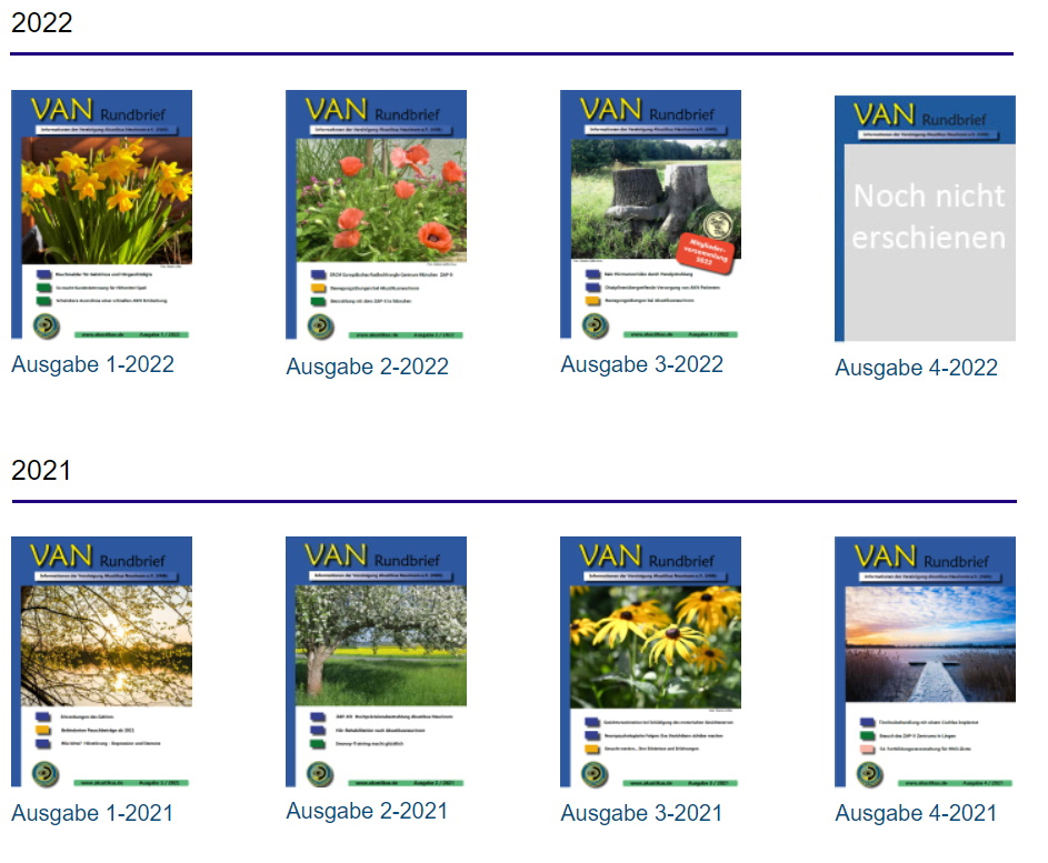 Hier finden Sie die Ausgaben der letzten zwei Jahre unserer Mitgliederzeitschrift "VAN-Rundbrief". Ein Inhaltsverzeichnis der jeweiligen Ausgabe steht ebenfalls zur Verfügung. Wenn Sie eine Ausgabe anfordern möchten, so können Sie das über den untenstehenden Link tun: